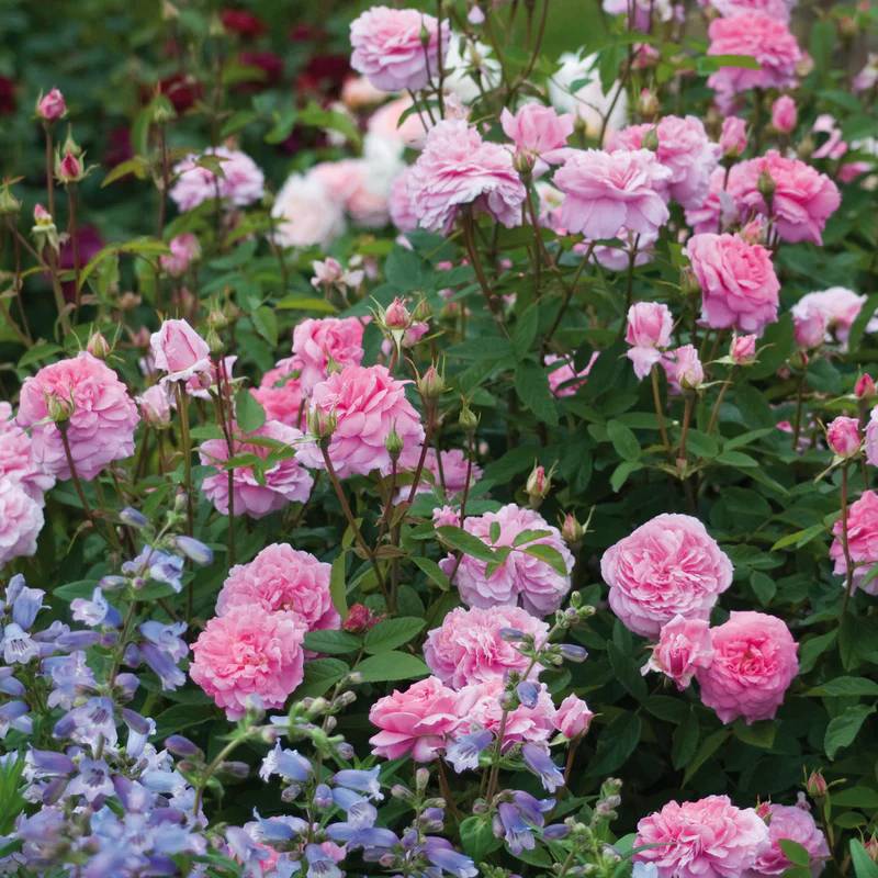A very healthy variety, bearing mid pink, medium-sized, Old Rose style blooms. They are held well above the dainty foliage and have a medium-strong Old Rose scent.