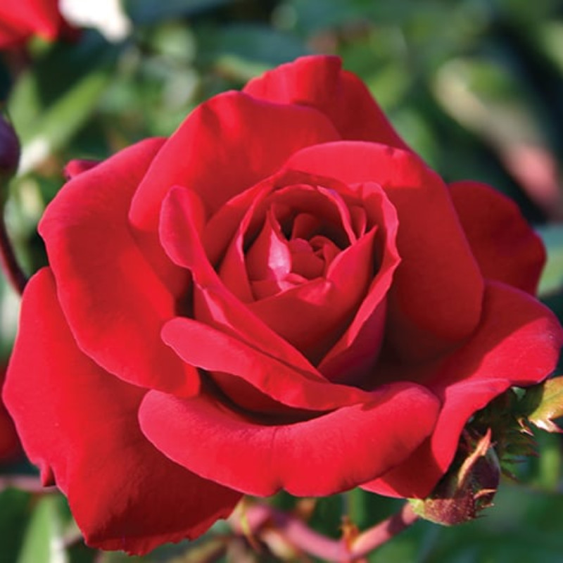 This beautiful, bright red rose produces brilliant clusters of flowers. The plant is well shaped and not as tall as most Grandifloras.